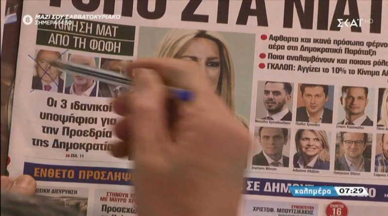 Καθώς περνούσε η ώρα στην τηλεοπτική του εκπομπή ο Γιώργος Αυτιάς έδειχνε να μην μπορεί να ξεπεράσει το κακό που τον βρήκε, οπότε, καθώς διάβαζε τα πρωτοσέλιδα και έφτασε σε εκείνο της εφημερίδας «Καρφί», είδε μπροστά του μία φωτογραφία με τους τρεις υποψήφιους για την Προεδρία της Δημοκρατίας που πρότεινε η Φώφη Γεννηματά (Σημίτης, Παπανδρέου, Βενιζέλος).