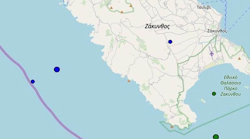 Σεισμική δόνηση σημειώθηκε το βράδυ του Σαββάτου στη Ζάκυνθο και είχε επίκεντρο στο θαλάσσιο χώρο, 24 χιλιόμετρα δυτικά της πόλης του νησιού.