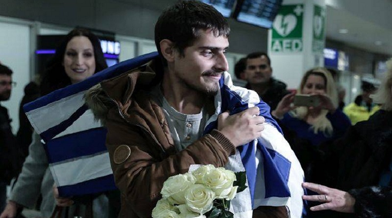Εκεί τον υποδέχθηκαν οι γονείς, συγγενείς και φίλοι του, με εκείνον να δηλώνει: «Επιτέλους, γύρισα σπίτι μου».