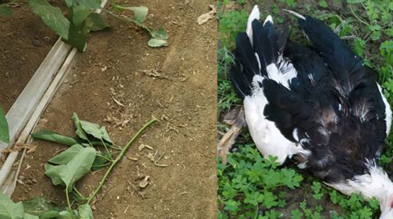 Σε διπλανό σημείο από το θερμοκήπιο ο ίδιος διατηρούσε ένα χώρο με πάπιες στον οποίο αυτοί που έκλεψαν τις μελιτζάνες μπήκαν μέσα για άγνωστο λόγο και φεύγοντας άφησαν την πόρτα ανοιχτή.