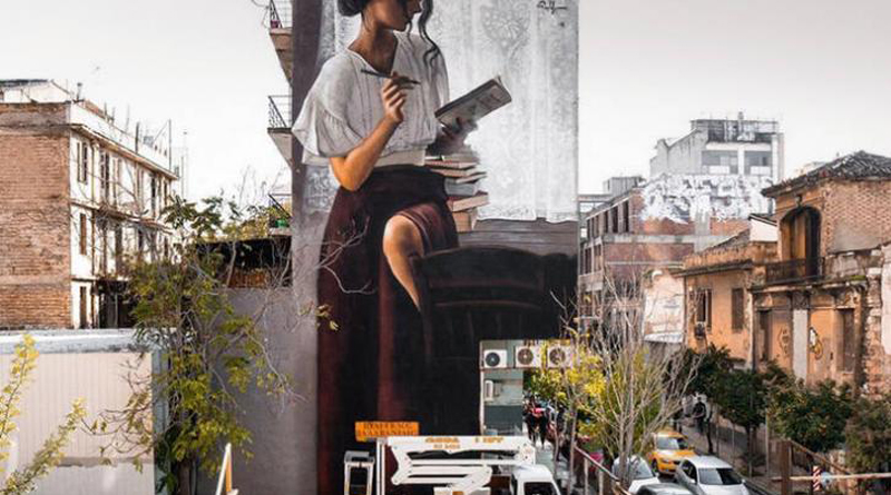 «Τόσο πολλά βιβλία, τόσο λίγος χρόνος». Αυτό είναι το μήνυμα του street artist SimpleG, ο οποίος με αναμφισβήτητη δημιουργικότητα κατάφερε να ομορφύνει τον τοίχο μιας πολυκατοικίας στην οδό Μεγάλου Αλεξάνδρου 2 στο Μεταξουργείο.