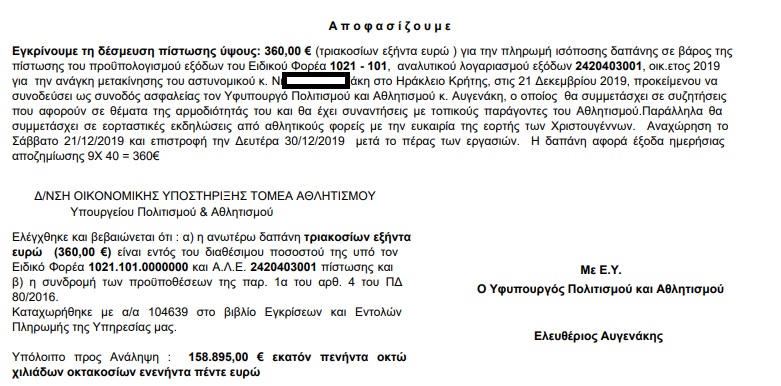 Δείτε επίσης: Ο Αυγενάκης πάει σε ποδοσφαιρικούς αγώνες και… αποζημιώνεται οικονομικά, με δική του υπογραφή! (έγγραφο)