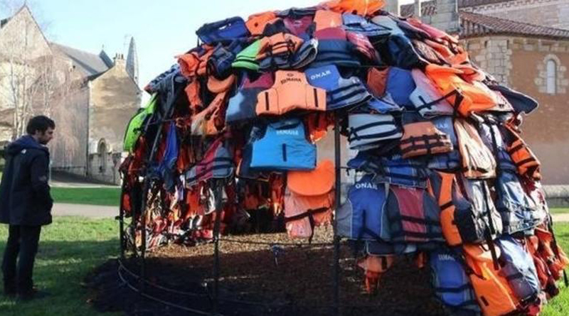Το έργο ενός νεαρού Έλληνα καλλιτέχνη, του Αχιλλέα Σούρα φτιαγμένο από εκατοντάδες σωσίβια μεταναστών που περισυνελέχθησαν στη Λέσβο, καταστράφηκε εν μέρει τη νύχτα του Σαββάτου προς την Κυριακή από εμπρησμό, στο Πουατιέ της κεντροδυτικής Γαλλίας.