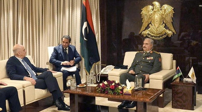 Την Κυριακή το πρωί ο Υπουργός Εξωτερικών της Ελλάδας, Νίκος Δένδιας μετέβη στη Βεγγάζη της Λιβύης, όπου συναντήθηκε με τον επικεφαλής του Λιβυκού εθνικού στρατού, στρατάρχη Χαλίφα Χάφταρ.