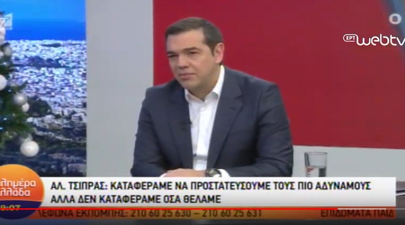 Στην αρχή της συνέντευξης ο Αλέξης Τσίπρας απαντώντας σε σχετική ερώτηση προχώρησε σε ένα μικρό απολογισμό. «Το κρίσιμο για μένα είναι ότι οι βασικοί λόγοι επετεύχθησαν. Όταν παρέλαβα τη χώρα ήταν στην μέση μιας κρίσης ανθρωπιστικής. Δεν είχαμε να δώσουμε μισθούς και συντάξεις. Καταφέραμε να βγούμε από την κρίση και να στηρίξουμε τους πιο αδύναμους».