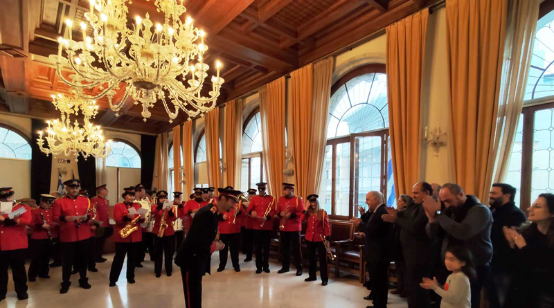 Ο Δήμαρχος ευχήθηκε στον Αρχιμουσικό της Φιλαρμονικής κ. Λεωνίδα Τζωρτζάκη και τα μέλη της, καλές γιορτές με υγεία και ευτυχία.