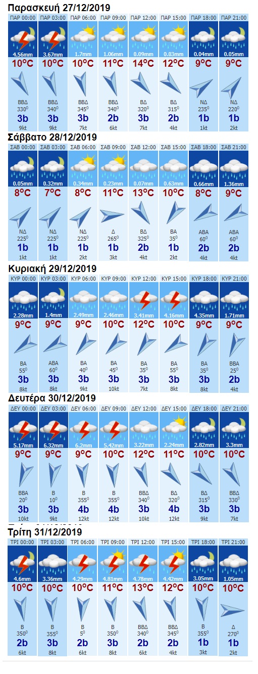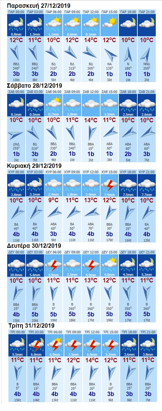 Δείτε σε γραφήματα την πρόγνωση της ΕΜΥ για το πώς θα χτυπήσει η κακοκαιρία από σήμερα μέχρι την παραμονή της Πρωτοχρονιάς στην Κρήτη.