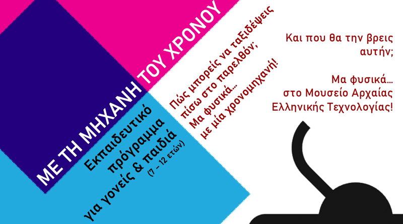 Το πρόγραμμα «Με τη Μηχανή του Χρόνου» θα πραγματοποιηθεί στο πλαίσιο των Χριστουγεννιάτικων δράσεων του Μουσείου Αρχαίας Ελληνικής Τεχνολογίας Κώστα Κοτσανά, το Σάββατο 28/12/2019 και τη Κυριακή 05/01/2020 στις 12.00 το μεσημέρι.
