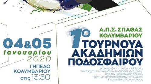 Read MoreΑντίστροφη μέτρηση για το 1ο Ποδοσφαιρικό Τουρνουά Ακαδημιών του Α.Π.Σ. Σπάθα Κολυμβαρίου