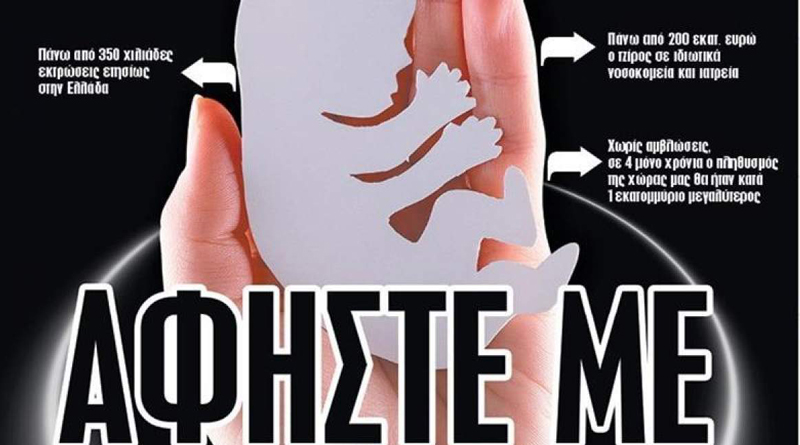 Συγχαίρω την Εφημερίδα παρά τις αντιδράσεις. Στην Ελλάδα δεν αμφισβητείται το δικαίωμα, της γυναίκας στην άμβλωση, αυτό όμως δεν σημαίνει ότι δεν αντιλαμβανόμαστε ότι το να έχουμε διπλάσιες εκτρώσεις από γεννήσεις γεννά ζητήματα επιβίωσης του Έθνους μας