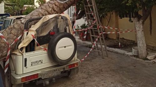 Κρήτη: Φοίνικας ξεριζώθηκε από τους δυνατούς ανέμους και έπεσε σε αυτοκίνητο (Φωτο)