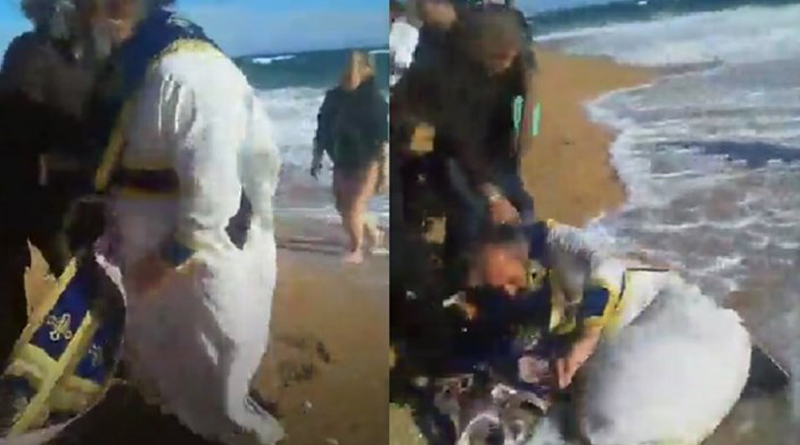 Ειδικότερα την ώρα που ο ιερέας πλησίασε τη φουρτουνιασμένη θάλασσα για να ρίξει τον τίμιο σταυρό, ο αέρας τον έριξε κάτω.