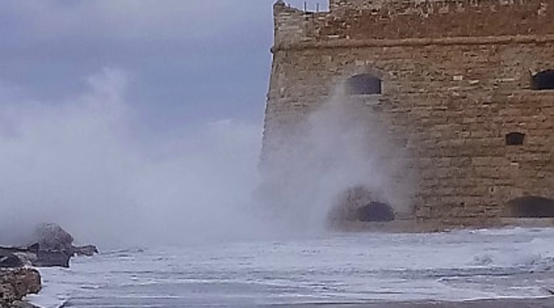Την δύναμη των μανιασμένων κυμάτων από την κακοκαιρία δέχτηκε και σήμερα ο επιβλητικός Κούλες, ο άγρυπνος φρουρός του Μεγάλου Κάστρου.
