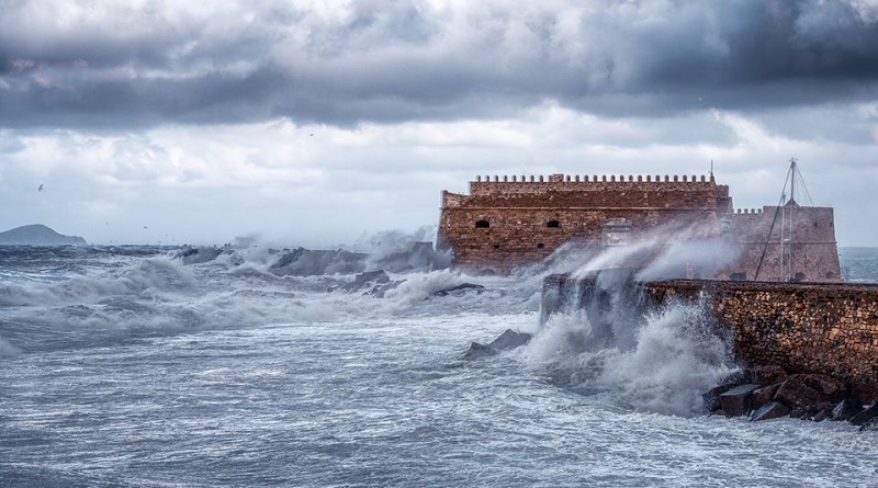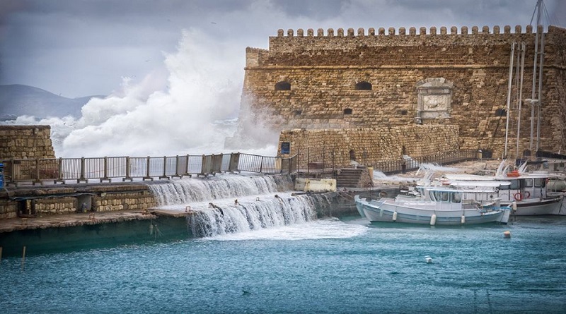 Οι φωτογραφίες είναι σημερινές και τραβήχτηκαν από τον Γιώργο Δεσίπρη. Η θάλασσα με 10 μποφόρ χτυπά την παραλία του Ηρακλείου, στην περιοχή του Κούλε. Μάλιστα, όπως φαίνεται και στις εικόνες, “καταπίνει” ακόμα και τη “λεωφόρο μπάι πας” και χύνεται στο ενετικό λιμάνι!