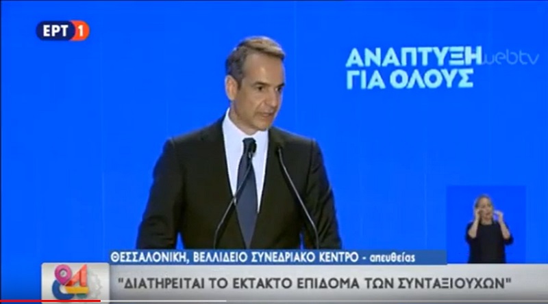 Δείτε την αναφορά του (ακόμα κι αν ξεκίνησε να λέει ότι… καταργείται και στη συνέχεια το διόρθωσε!) στη ΔΕΘ για τη 13η σύνταξη (περίπου από το 2.50″ στο βίντεο)