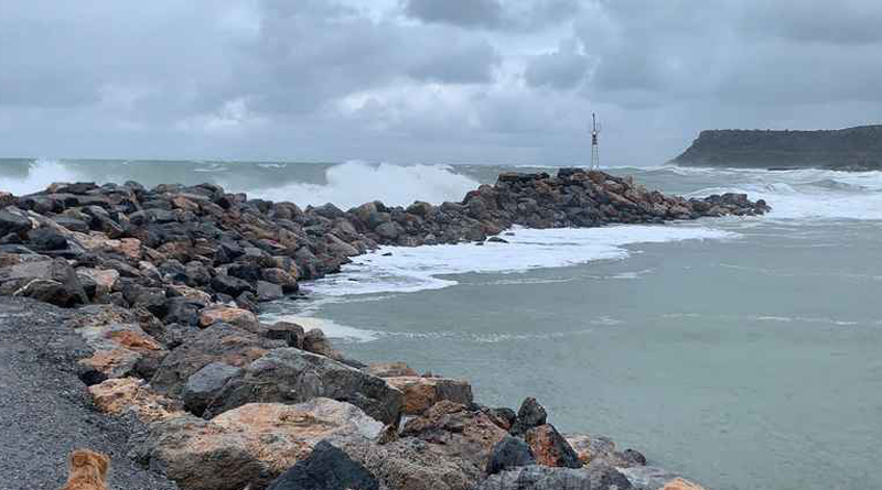 Οι θυελλώδεις άνεμοι των 10 μποφόρ που πνέουν από την Κυριακή και τα τεράστια κύματα που “χτυπούν” ασταμάτητα, οδήγησαν στην κατάρρευση ενός μέρους του μόλου του λιμανιού στο Σίσι.