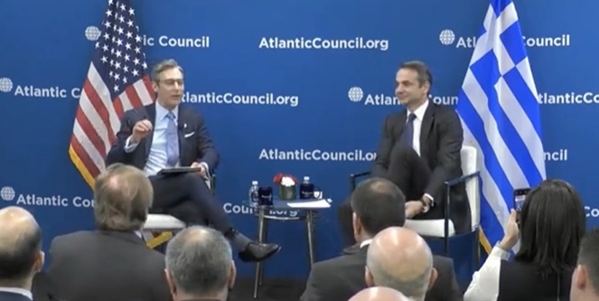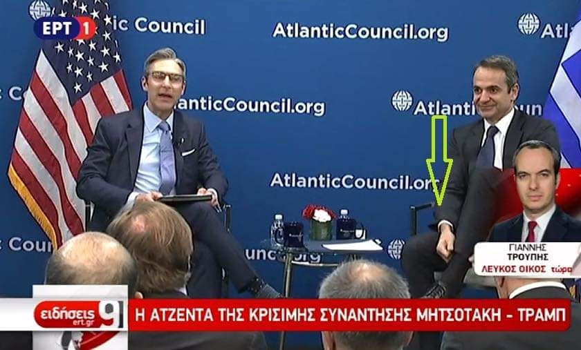 Α, δείτε τον – κι αισθανθείτε και πάλι υπερήφανοι- να μιλά άριστα αγγλικά στη συζήτηση με τον αντιπρόεδρο του Atlantic Council, Damon M. Wilson. Και ξαφνικά να σηκώνει το πόδι του, μπροστά στο κοινό και τις τηλεοπτικές κάμερες, να σηκώνει στη συνέχεια το πανάκριβο παντελόνι του και να φτιάχνει τις πανάκριβες κάλτσες του με τα αδούλευτα χεράκια του!