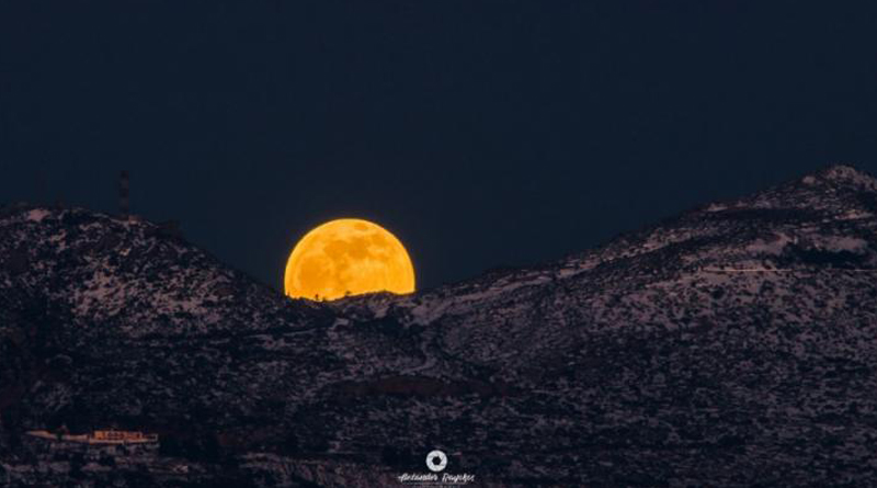 Εντυπωσιακή είναι η πρώτη πανσέληνος για το 2020, η οποία μάλιστα συνδυάζεται με έκλειψη σελήνης από την παρασκιά της γης, η οποία είναι ορατή και από την Ελλάδα. Μια από τις πιο όμορφες εικόνες είναι αυτή του Αλέξανδρου Μπογιόκου με την πανσέληνο να ξεπροβάλει πάνω από τη χιονισμένη Πεντέλη στην Αττική. Η εικόνα δημοσιεύθηκε στη σελίδα του Meteoclub.