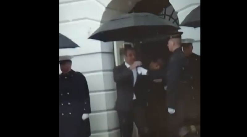 Προσπάθησε να πάρει… μια ομπρέλα από φρουρό του Λευκού Οίκου! ΚΙ όταν το συνειδητοποίησε, έκανε μια… δεξιά πιρουέτα, αμήχανος και μάλλον ντροπιασμένος!