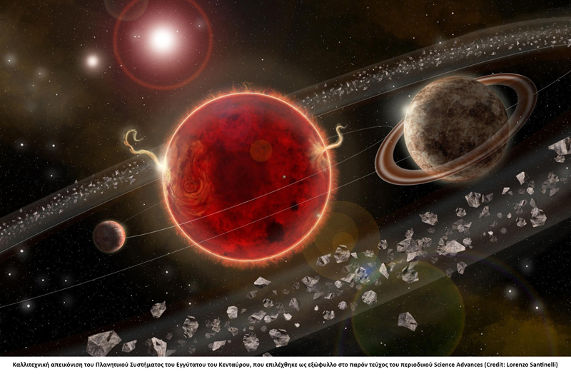 Ο Εγγύτατος είναι ένας κόκκινος νάνος, μικρότερος και πιο κρύος από τον Ήλιο, που βρίσκεται 4.3 έτη φωτός από εμάς. Ήδη από το 2016 ήταν γνωστό ότι φιλοξενούσε έναν τουλάχιστον πλανήτη, τον Εγγύτατο β. Μια σημαντική ανακάλυψη από διεθνή ομάδα ερευνητών, η οποία δημοσιεύθηκε χθες στο έγκριτο περιοδικό Science Advances, με επικεφαλής τον Φάμπιο Ντελ Σόρντο, μεταδιδακτορικό ερευνητή του Ινστιτούτου Αστροφυσικής του Ιδρύματος Τεχνολογίας και Έρευνας (ΙΤΕ), και τον Μάριο Νταμάσσο από το Εθνικό Ινστιτούτο Αστροφυσικής (INAF) στο Τορίνο, φέρνει στο φως δεδομένα που υποδηλώνουν την ύπαρξη ενός δεύτερου πλανήτη σε τροχιά γύρω από αυτό το σύστημα, του Εγγύτατου γ.