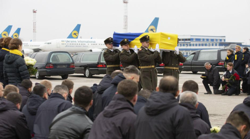 Σήμερα επίσης έφτασαν στην Ουκρανία οι 11 σοροί των πολιτών της χώρας που έχασαν τη ζωή τους στο τραγικό δυστύχημα της 8ης Ιανουαρίου.