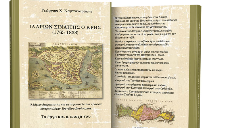 Η εκδήλωση διοργανώνεται από την Ιερά Μητρόπολη Αρκαλοχωρίου Καστελίου και Βιάννου και τελεί υπό την αιγίδα της Περιφέρειας Κρήτης-Π. Ε. Ηρακλείου, του Δήμου Μινώα Πεδιάδος και με την υποστήριξη του πολιτιστικού συλλόγους Αρμάχας «Ο Ιλαρίων». Στο βιβλίο ο συγγραφέας εξετάζει την προσωπικότητα και το έργο του γεννημένου στην Κρήτη λόγιου εκπροσώπου του νεοελληνικού διαφωτισμού Ιλαρίωνος Σιναίτου Κρητός (1765-1838). Βαθύς γνώστης της αρχαίας Ελληνικής Γραμματείας, μεταφραστής των ιερών κειμένων των γραφών, «Ζηλωτής της του Γένους Παιδείας», φλογερός πατριώτης ο Ιλαρίων επί μισό περίπου αιώνα κατέλαβε καίριες θέσεις στο Πατριαρχικό και το ευρύτερο Ρωμαϊκό περιβάλλον της Κωνσταντινούπολης. Από όλες αυτές τις θέσει βοήθησε πολλαπλώς στην μόρφωση του υπόδουλου γένους, στην ενδυνάμωση της εθνικής συνείδησης και προστάτευσε με κάθε τρόπο από την οθωμανική αυθαιρεσία τους χειμαζόμενους Έλληνες.
