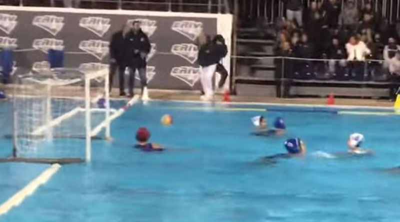 Τότε ένας οπαδός που είχε πάει πίσω από τον διαιτητή τον έσπρωξε στην πισίνα και έφυγε ανενόχλητος χωρίς να συμβεί τίποτα και χωρίς κάποιος να τον σταματήσει.