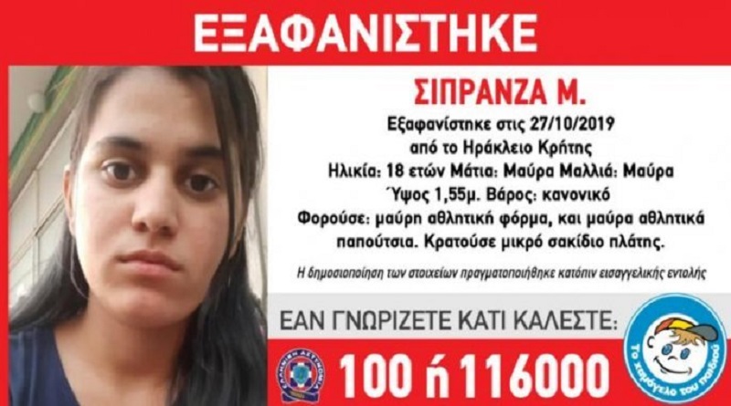 Η 18χρονη είχε εξαφανιστεί στις 27/10/2019 και ώρα 18:00, από την περιοχή του Ηρακλείου, Κρήτης.