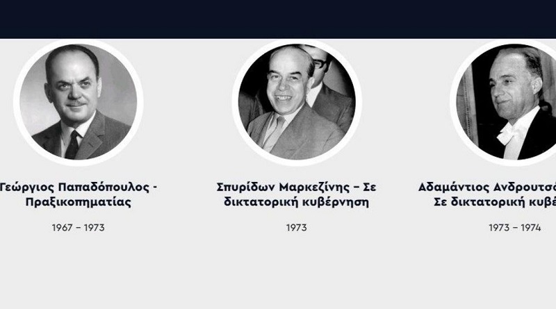 Αντί να αναγραφεί το αληθινό και απλό «1967-1974», Δικτατορία στην Ελλάδα-Μαύρη περίοδος, χωρίς αναφορά και φωτογραφίες των πραξικοπηματιών, οι υπεύθυνοι του Ελλάδα 2021 της κ. Αγγελοπούλου, επέλεξαν να τους αναρτήσουν κανονικά με τις φωτογραφίες τους, τον Γ Παπαδόπουλο, τον Μαρκεζινη και άλλους, λες και οφείλουμε να αποτίσουμε κάποιου είδους τιμή στους βιαστές της δημοκρατίας στην Ελλάδα.