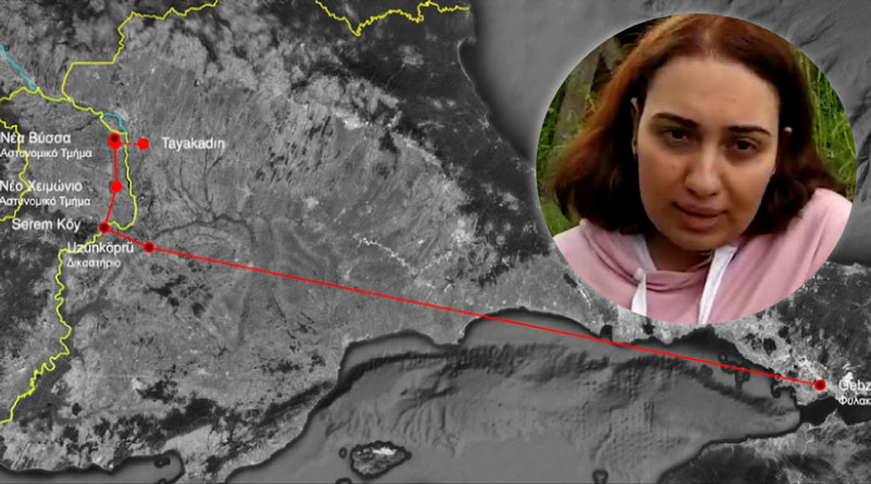 Το βίντεο ανασυστήνει στον χάρτη την πορεία της Αϊσέ Ερντογάν (συνεπωνυμία με τον πρόεδρο της Τουρκίας) από τη στιγμή που πάτησε σε ελληνικό έδαφος μέχρι το απόγευμα της ίδιας ημέρας, όταν εντοπίζεται το ίχνος της στο αστυνομικό τμήμα Χειμωνίου, από όπου έστειλε στον αδελφό της μήνυμα με το γεωγραφικό στίγμα της μέσω της εφαρμογής WhatsApp.