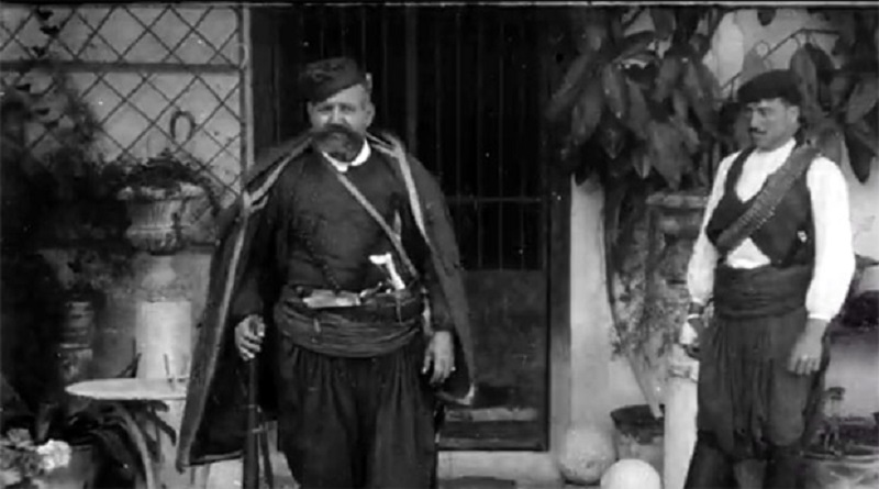 Ο άνθρωπος που ποζάρει στην εικόνα με την κρητική φορεσιά και το όπλο είναι μια μεγάλη μορφή των κρητικών αγώνων για την ελευθερία, που στη συνέχεια υπηρέτησε ως πληρεξούσιος (βουλευτής) στην κρητική αλλά και, μετά την ένωση, στην ελληνική βουλή. Είναι ο Μιχαήλ Μακράκης, πρώτος σε ψήφους εκλεγμένος βουλευτής Κρήτης στις πρώτες εκλογές που είχαν γίνει στο νησί για την εθνική βουλή, στις 31 Μαΐου 1915.