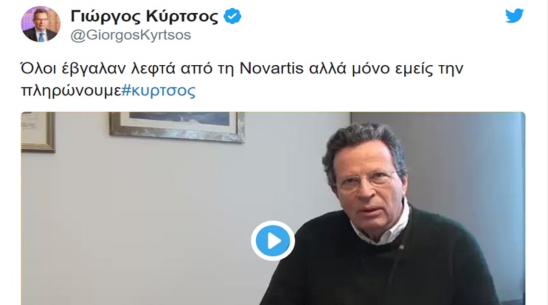 Σε μια απίστευτα κυνική παραδοχή προχωρεί με βίντεο που ανάρτησε στον προσωπικό του λογαριασμό στο twitter ο ευρωβουλευτής της ΝΔ, Γιώργος Κύρτσος. “Όλοι έβγαλαν λεφτά από τη Novartis αλλά μόνο εμείς την πληρώνουμε”, λέει με πραγματικό θράσος!
