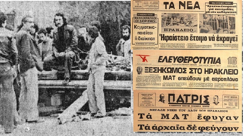 Προηγουμένως, η κυβέρνηση έστειλε από την Αθήνα ισχυρές δυνάμεις των ΜΑΤ, με αύρες, αλλά και το στρατό, για “την επιβολή της τάξης”… Το απίστευτο πλήθος στην πραγματικότητα εμπόδισε την εμφάνιση των μεταφερόμενων δυνάμεων καταστολής και οδήγησε στη δικαίωση των Ηρακλειωτών.