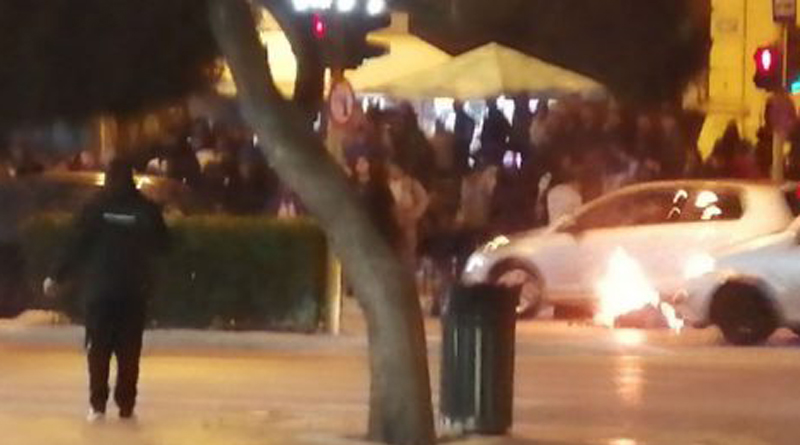 Οι νεαροί που είχαν συγκεντρωθεί από νωρίς στην πλατεία της Δημοτικής Αγοράς, και μερικοί εξ αυτών φορούσαν μάσκες, άναψαν φωτιά στη μέση του δρόμου, δημιουργώντας πρόβλημα στην κυκλοφορία.