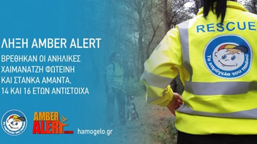 Σε λήξη του μηχανισμού Amber Alert προχώρησε σήμερα, Δευτέρα 16 Μαρτίου, το «Χαμόγελο του Παιδιού» για δύο ανήλικα κορίτσια Δείτε: Χαμόγελο του Παιδιού: Συναγερμός για την εξαφάνιση δύο ανήλικων κοριτσιών Το χαμόγελο του παιδιού ανακοίνωσε: