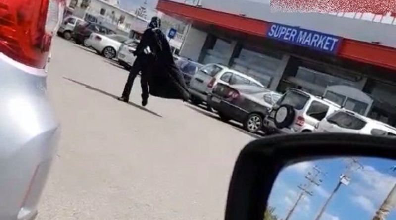Ντυμένος στα μαύρα λοιπόν με μάσκα, φόρμα και κάπα, μπήκε σε Σούπερ Μάρκετ των Κουνουπιδιανών στο Ακρωτήρι έκανε τα ψώνια του και αποχώρησε απόλυτα ασφαλής.