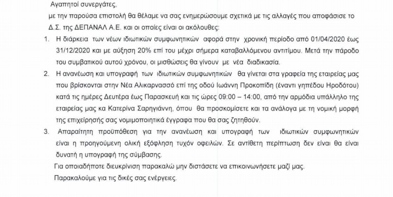 Ενημερωτική επιστολή σχετικά με την ανανέωση των συμφωνητικών στις θέσεις στάθμευσης στον υπαίθριο σταθμό αυτοκινήτων έναντι του αεροδρομίου Ηρακλείου Ν. Καζαντζάκης.
