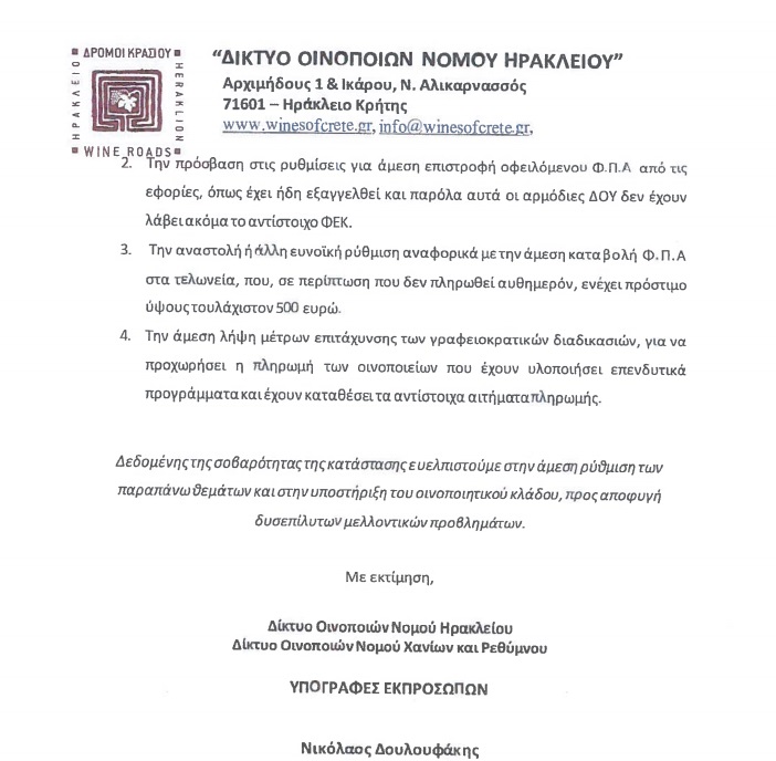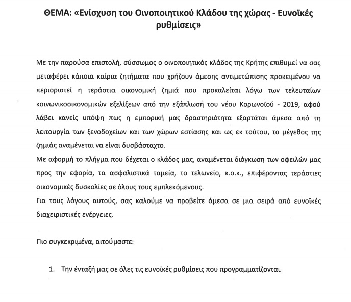 Αναλυτικά η επιστολή των οινοποιών Κρήτης:
