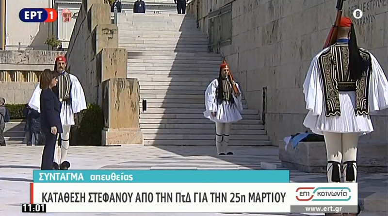 Με λιτό και πάντως διαφορετικό τρόπο τιμάται φέτος η εθνική επέτειος της 25ης Μαρτίου. Στις 11.00 λιτή τελετή κατάθεσης στεφάνου στο Μνημείο του Άγνωστου Στρατιώτη, από την Πρόεδρο της Δημοκρατίας Κατερίνα Σακελλαροπούλου, παρουσία του πρωθυπουργού Κυριάκου Μητσοτάκη, του προέδρου της Βουλής Κωνσταντίνου Τασούλα, του αρχηγού της αξιωματικής αντιπολίτευσης Αλέξη Τσίπρα, της προέδρου του Κινήματος Αλλαγής Φώφης Γεννηματά, του γ.γ. του ΚΚΕ Δημήτρη Κουτσούμπα και τους αρχηγούς των Ενόπλων Δυνάμεων.