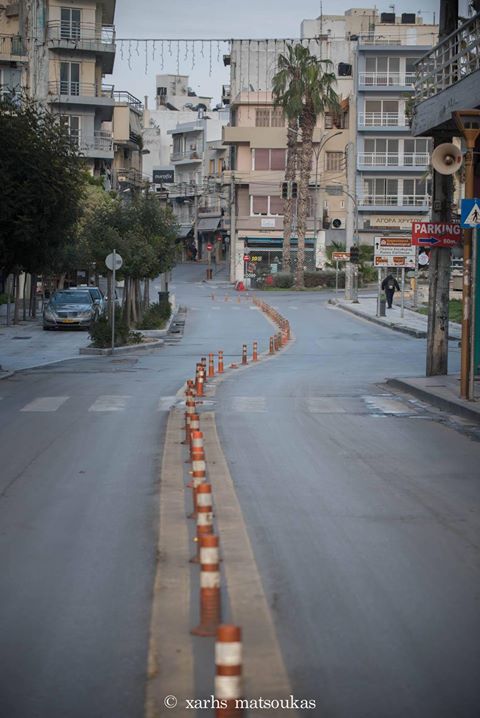 Για 11 συνεχόμενες ημέρες, από τη λήψη μέτρων περιορισμού των μετακινήσεων, το Ηράκλειο θυμίζει πόλη-φάντασμα. Άδειοι δρόμοι και πεζόδρομοι, ενώ τα καταστήματα κλειστά, μέσα από τις φωτογραφίες που μας έστειλε ο Χάρης Ματσούκας, φαίνεται πως οι Ηρακλειώτες «μένουμε σπίτι».