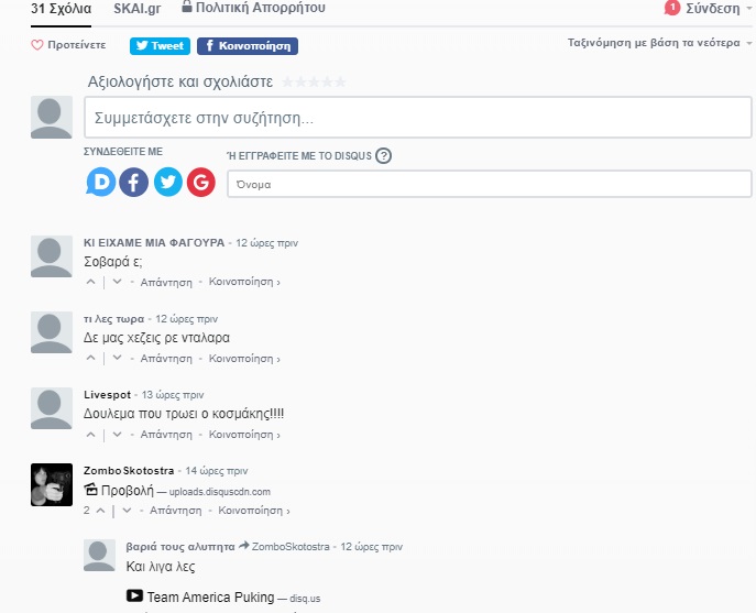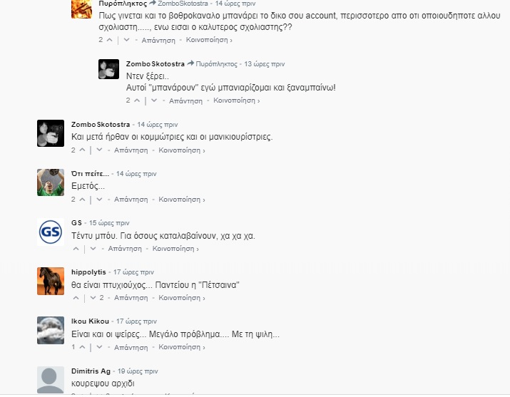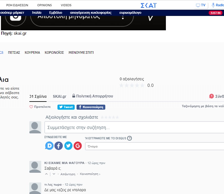 Ίσως περισσότερο ενδιαφέρον έχουν ακόμα τα σχόλια κάτω από την ανάρτηση του ΣΚΑΪ