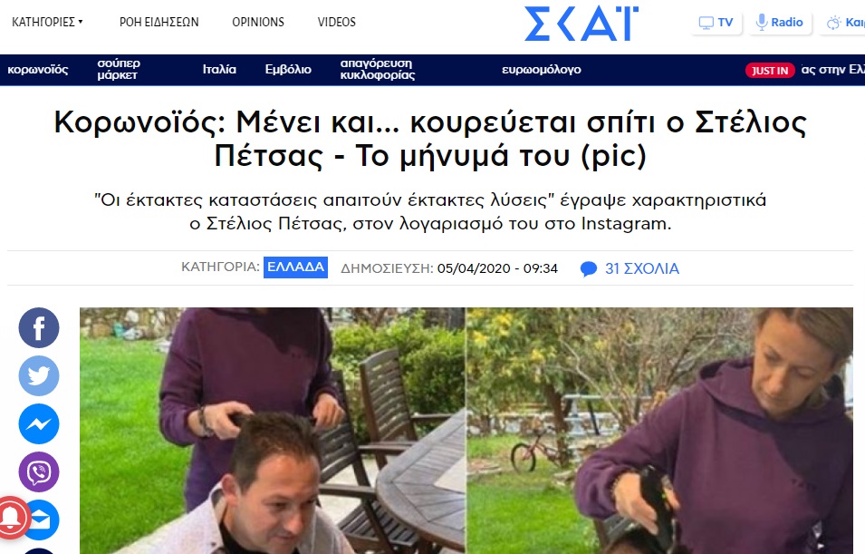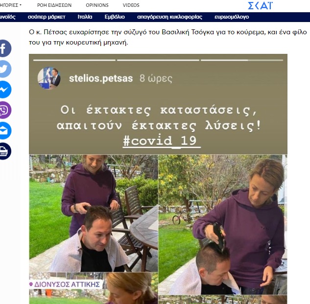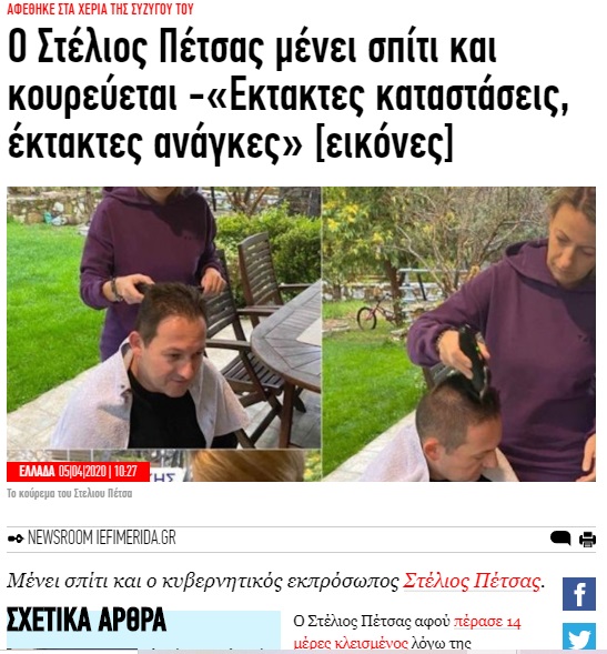 Τέτοιες που να μας ενδιαφέρουν ότι ο κ. Πέτσας κουρεύεται κατ’ οίκον από τη σύζυγό του… Λες και ξέραμε πριν μερικούς μήνες ποιος είναι ο Πέτσας ώστε να έχει και ενδιαφέρον το κούρεμα από τη σύζυγό του…