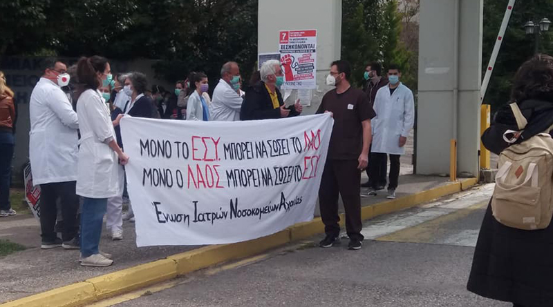 Παλεύουμε με τους νοσηλευτές τους γιατρούς, όλους τους εργαζόμενους στα νοσοκομεία για ενίσχυση της δημόσιας υγείας προκειμένου να αντιμετωπιστεί η πανδημία.