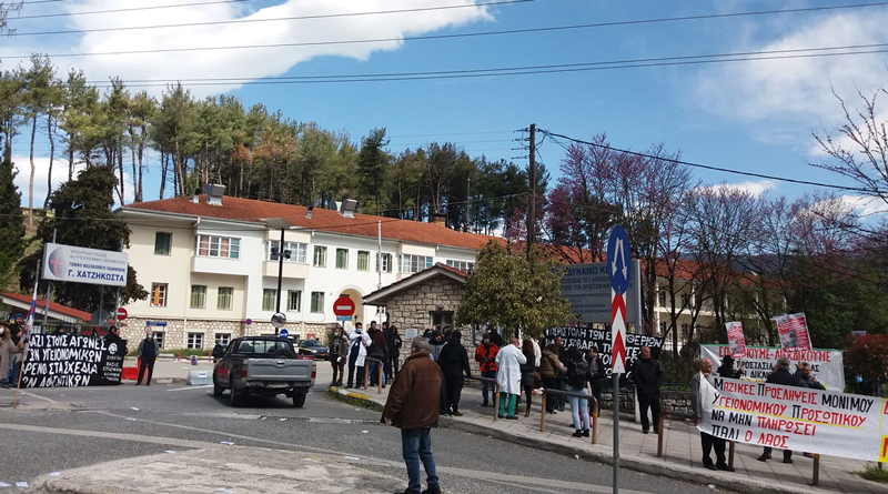 Με έντονη την παρουσία της αστυνομικής δύναμης, η οποία κατέγραψε τα ονόματα των παρευρισκόμενών στο χώρο, πραγματοποιήθηκε στον προαύλιο του Νοσοκομείου Μυτιλήνης η διαμαρτυρία, στο πλαίσιο της παγκόσμιας ημέρας υγείας και της πανελλαδικής δράσης, με εκπροσώπους συνδικαλιστικών οργάνων, του Παλεσβιακού Εργατοϋπαλληλικού Κέντρου, της Ανταρσία στο Αιγαίο- Αντικαπιταλιστική Αριστερά.