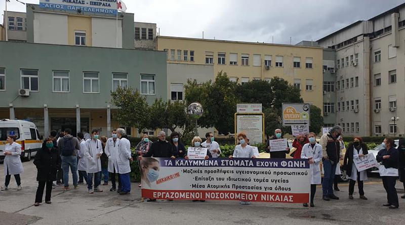 (γιατροί, νοσηλευτές, μέλη του Συλλόγου εργαζομένων του Νοσοκομείου Μεταξά μαζί με αντιπροσωπείες σωματείων εργαζομένωνανταποκρίθηκαν στο κάλεσμα για τη σημερινή κινητοποίηση: φωτογραφία από 902.gr)