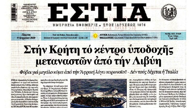 “Στην Κρήτη το κέντρο υποδοχής των μεταναστών από την Λιβύη”, είναι το σημερινό πρωτοσέλιδο της γνωστής συντηρητικής εφημερίδας “ΕΣΤΙΑ”. Με το δημοσίευμα αυτό της εφημερίδας που διευθύνει ο δημοσιογράφος Μ. Κοττάκης (γνωστός επίσης δημοσιογράφος του συντηρητικού χώρου) επιβεβαιώνεται πλήρως η ανάρτηση που είχε κάνει το Candiadoc μόλις στις 31 Μαρτίου με τον τίτλο: Μετατρέπουν την Κρήτη σε αποθήκη ψυχών – Η συμφωνία για μεταφορά μεταναστών από τη Μεσόγειο.