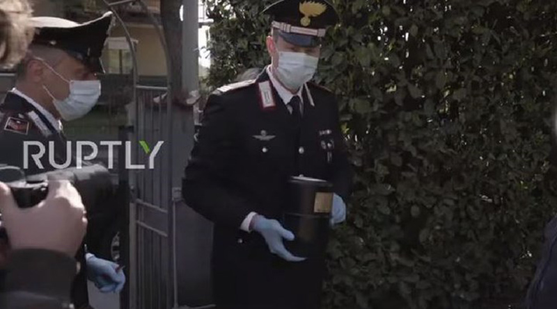 Σε βίντεο που δημοσίευσε το Ruptly από την περιοχή του Μπέργκαμο, δύο άνδρες της ιταλικής αστυνομίας διανέμουν τεφροδόχους ανθρώπων που έχασαν τη ζωή τους από τον ιό στις οικογένειες τους. Όπως φαίνεται στα πλάνα οι αστυνομικοί δεν μπορούν να κρύψουν τη συναισθηματική τους φόρτιση για αυτή την τόσο δύσκολη “αποστολή” που έχουν αναλάβει.