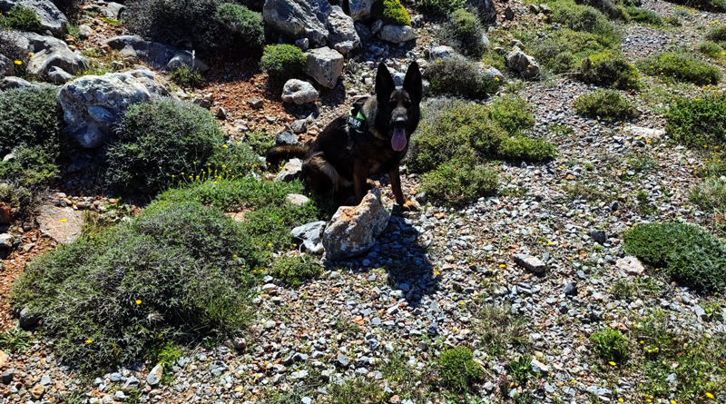Όπως αναφέρει, την Μεγάλη Παρασκευή, η Πάκα, η ειδικά εκπαιδευμένη σκυλίτσα στην ανεύρεση δηλητηριασμένων δολωμάτων, παρέα με τον Γιώργο Χωραφά, βγήκαν για εξάσκηση σε άσκηση προσομοίωσης στον Βρουχά Λασιθίου.
