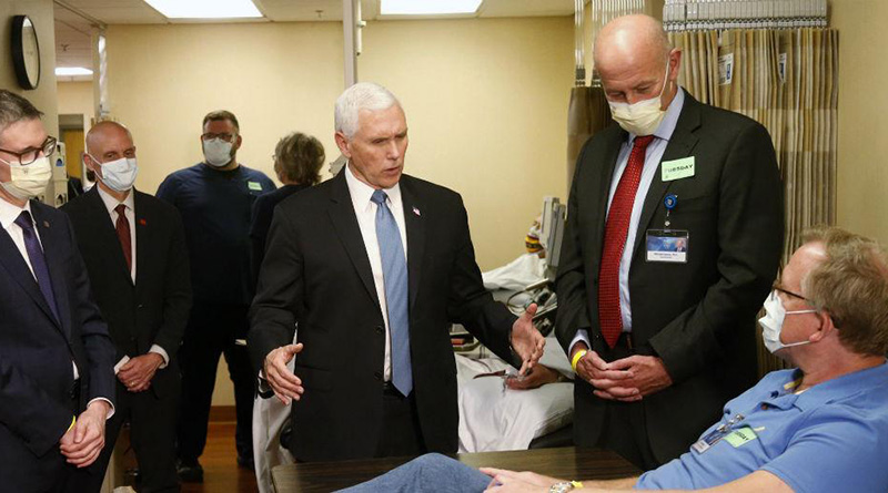 Ο Αμερικανός αντιπρόεδρος επισκέφθηκε το κορυφαίο νοσοκομείο δίχως να φοράει μάσκα, την ώρα που η χρήση της είναι υποχρεωτική στον χώρο για όλους τους επισκέπτες. Αλλά ο Πενς ήταν ο μόνος που εμφανίστηκε χωρίς προστατευτικά μέσα.