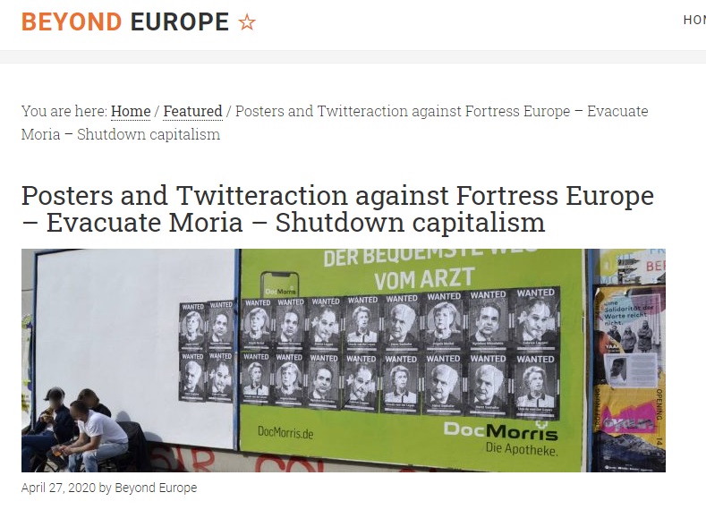 “Ποιοι είναι οι πολιτικοί και οι οργανώσεις που αρνούνται συνεχώς να σώσουν ανθρώπους που διαφεύγουν από τις εμπόλεμες ζώνες, από την πείνα και τον φόβο και αναζητούν μια καλύτερη ζωή σε όλο τον κόσμο; Ποιος φταίει για την υγεία και τις απειλητικές για τη ζωή συνθήκες διαβίωσης σε στρατόπεδα προσφύγων όπως η Μοριά στην Ελλάδα και αλλού; Είναι το σύστημα – αλλά και τα αφεντικά που το επιβάλλουν. Αρκετά! Σε όλη τη Γερμανία και την Αυστρία εμφανίστηκαν αφίσες κατά τη διάρκεια της νύχτας, φωνάζοντας τους υπεύθυνους για αυτήν τη δολοφονική κατάσταση”